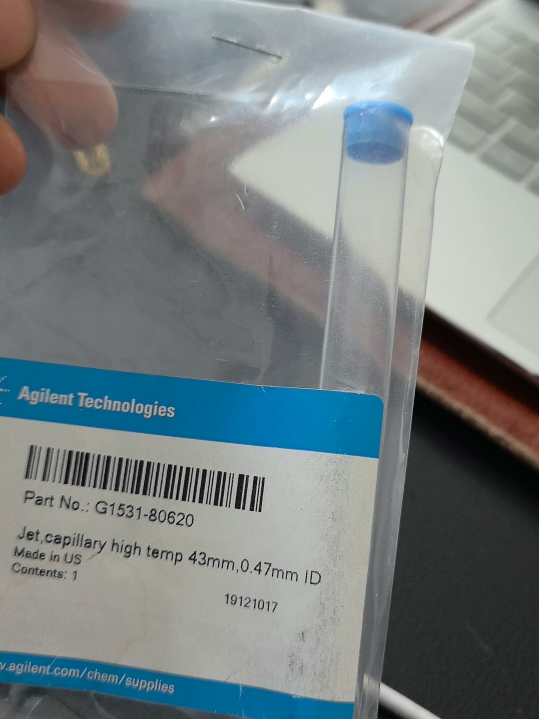 240523, Agilent gas-phase FID nozzle, original item number G1531-80620, new item number 5200-0177 optimized nozzle, 0.018-inch inner diameter nozzle, used for capillary columns