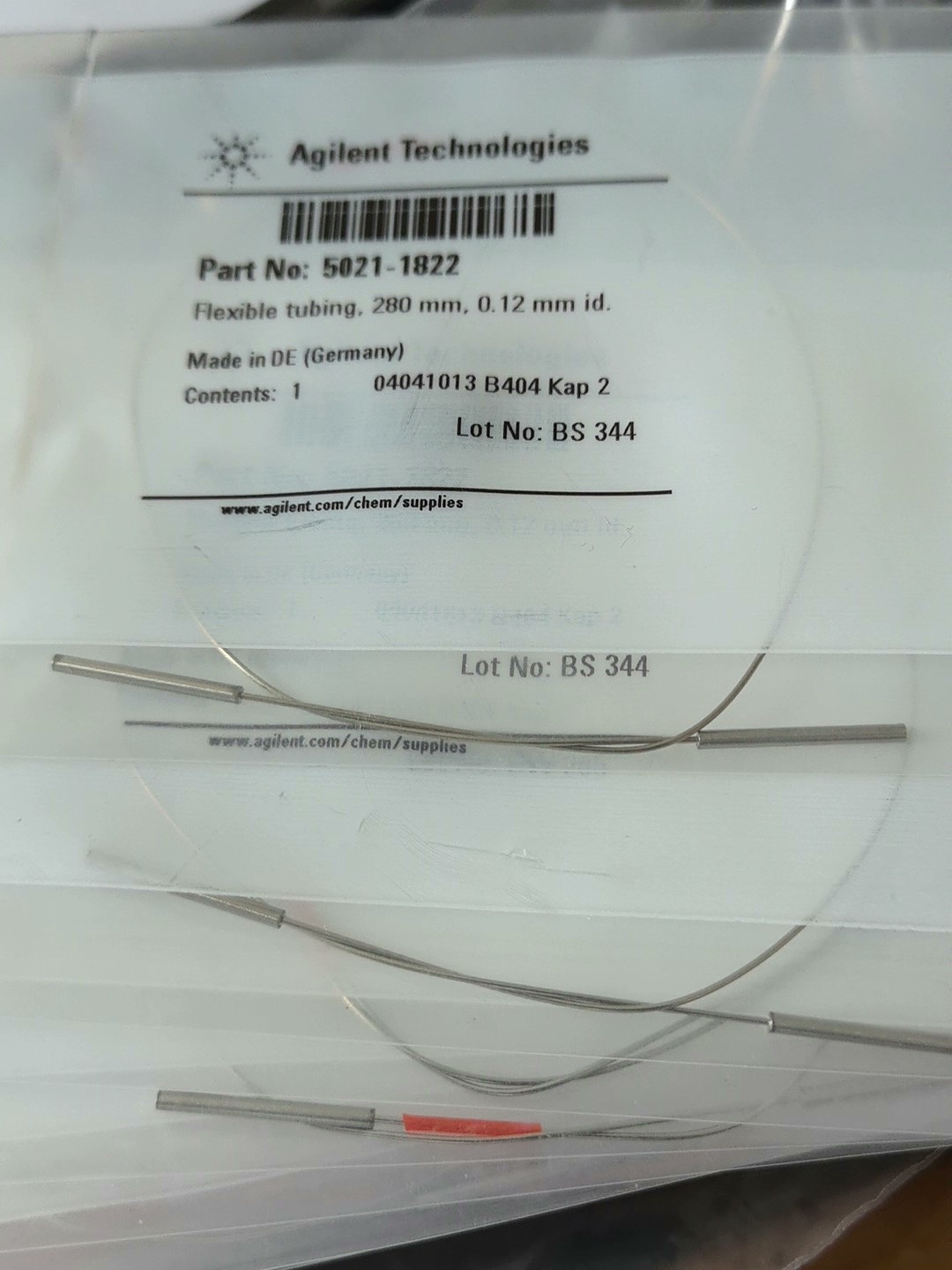 5021-1822 Agilent stainless steel capillary tube, brand new unopened 0.12 x 280 mm, without joints
