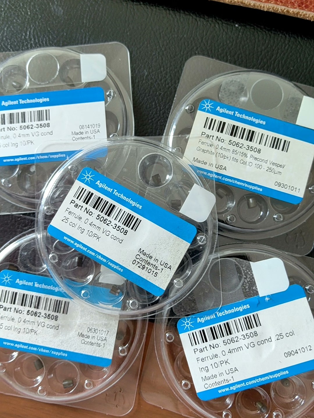 5062-3508 sealing gasket, inner diameter 0.4 mm, pre aged for MSD interface, 15% graphite/85% Vespel, suitable for 0.25 mm chromatography column, long type, recommended Agilent GC/MS transmission line with mass spectrometry interface column nut, part number 05988-20066, 10/package