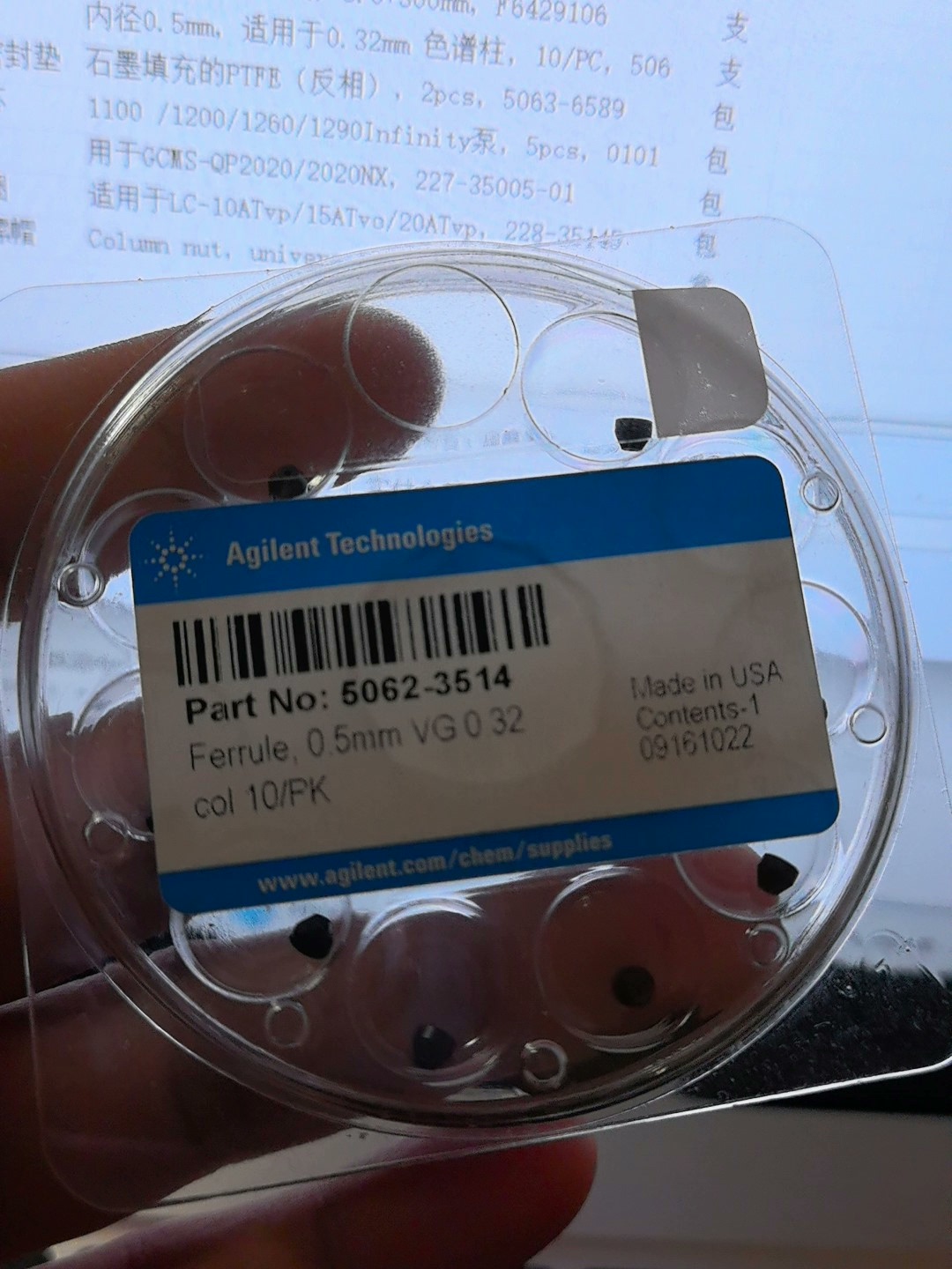 5062-3514 Agilent gas chromatography, sealing gasket, 0.5 mm VG, 0.32 mm chromatography column, 10/including tax price: CNY 820.38, brand new genuine product unopened