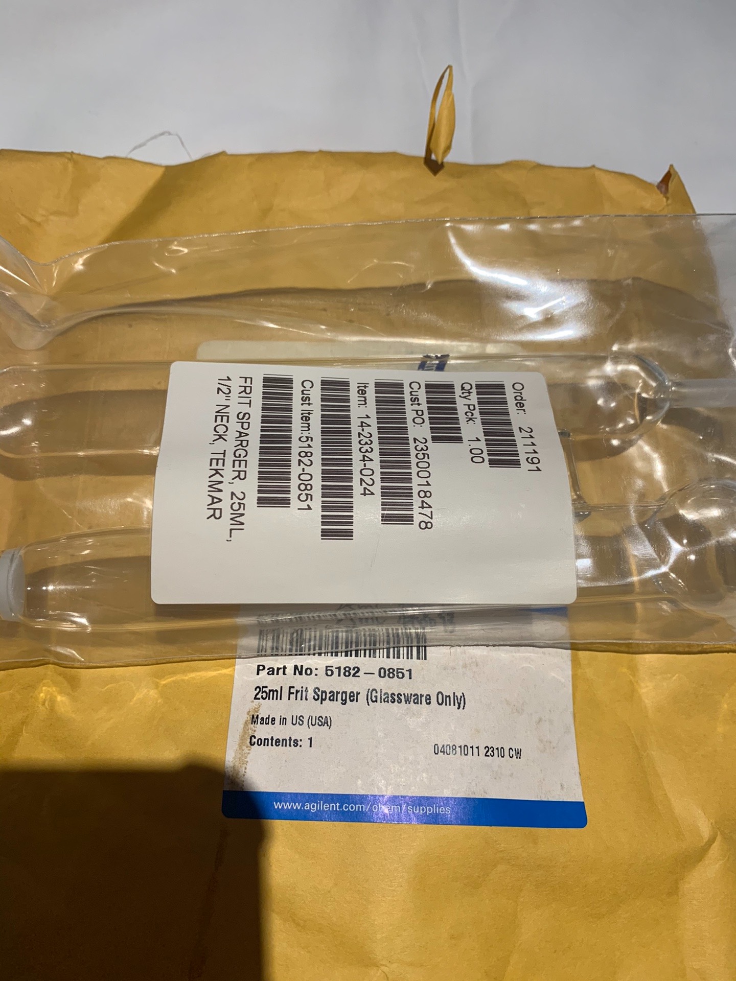 Agilent 5182-0851Tekmar25ml purge tube, original new and undisassembled, need to contact.