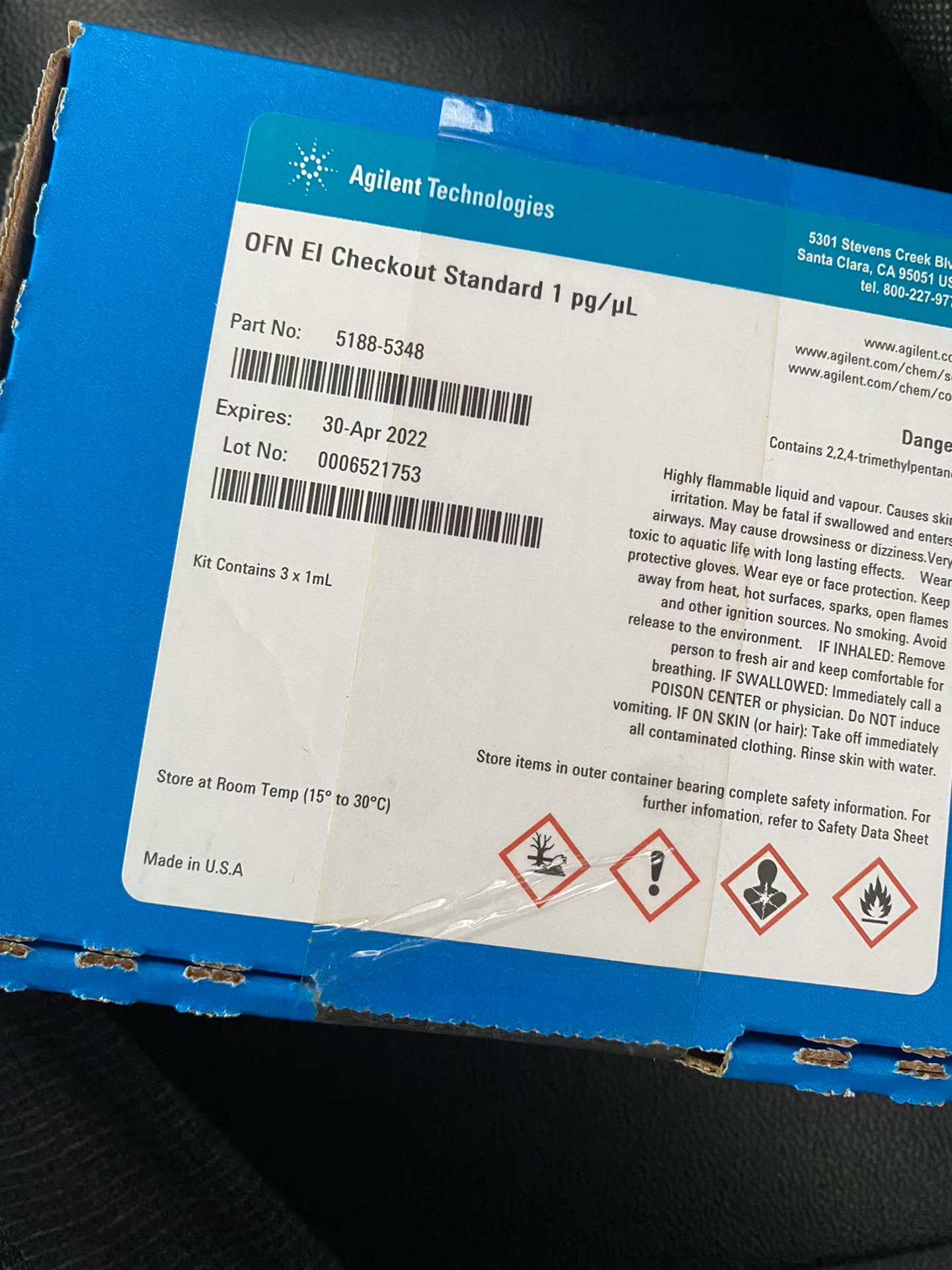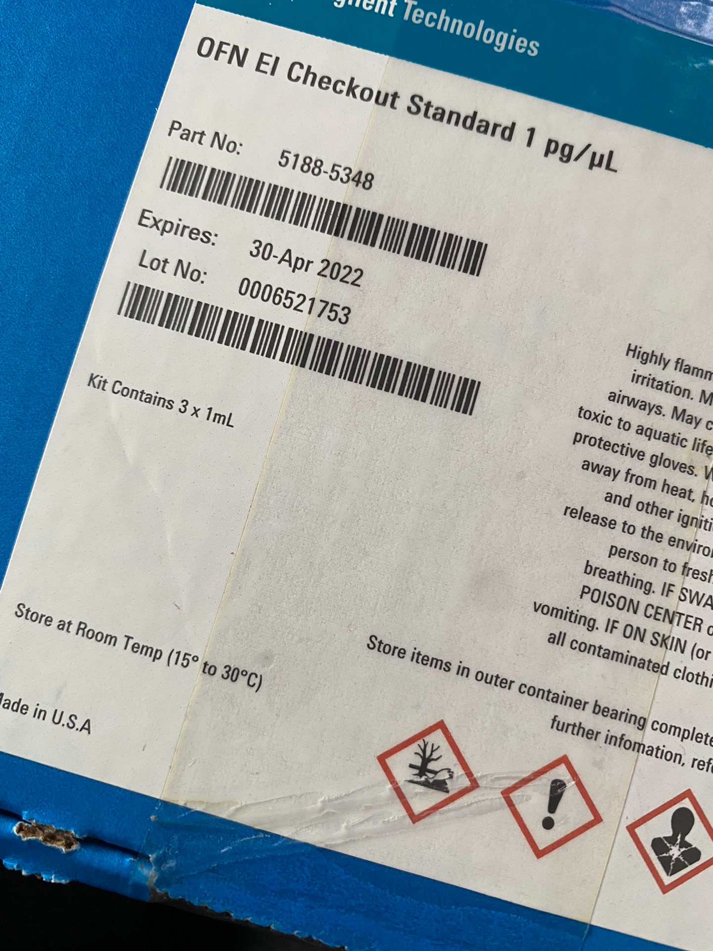 Agilent 5188-5348 test reagent, OFN EI calibration standard, 1pg/uL