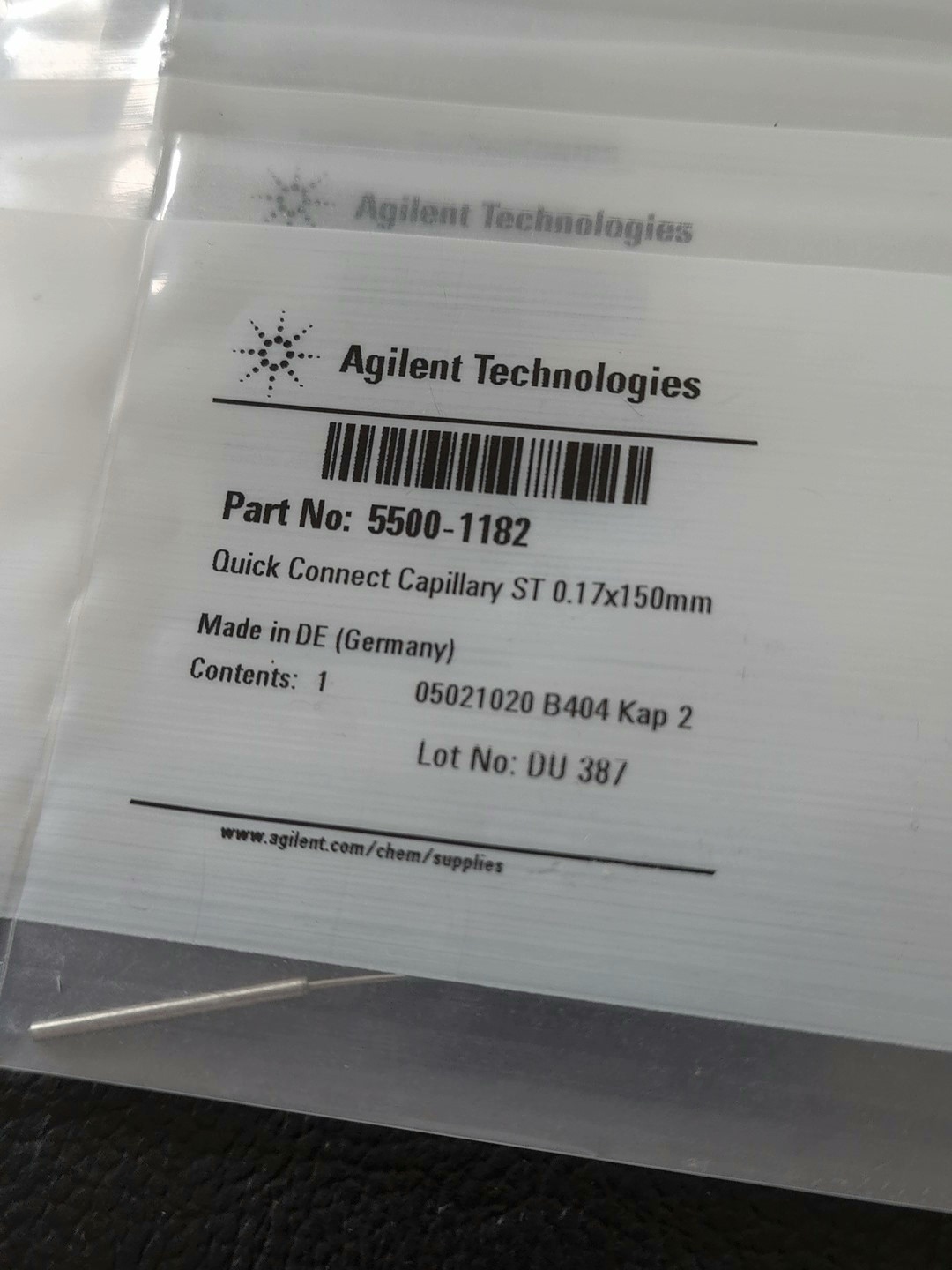 Agilent brand new 5500-1182 capillary with thread Quick Connect quick connect capillary, stainless steel, 0.17 x 150mm, photographed in person