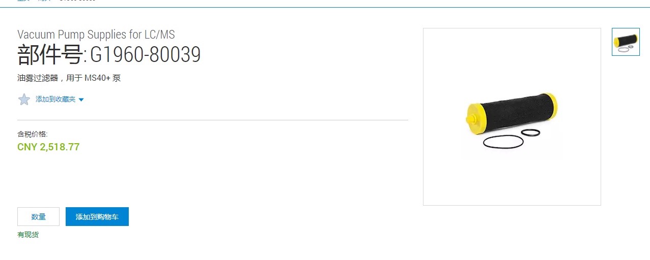 Agilent G1960-80039 Oil filter for mechanical pumps, fore pumps