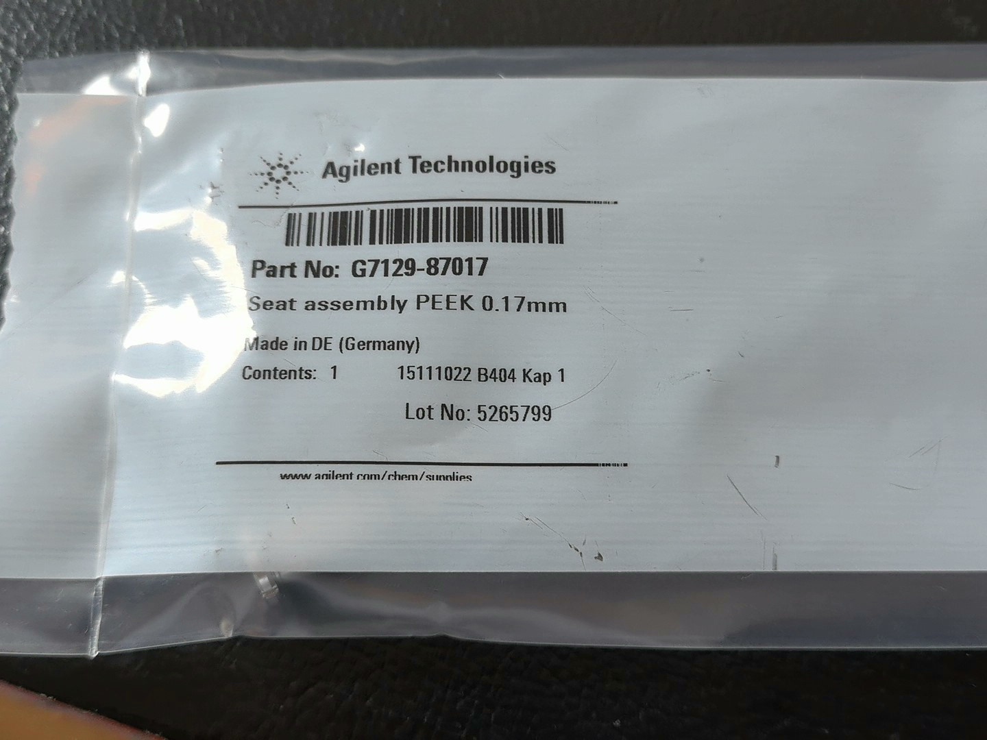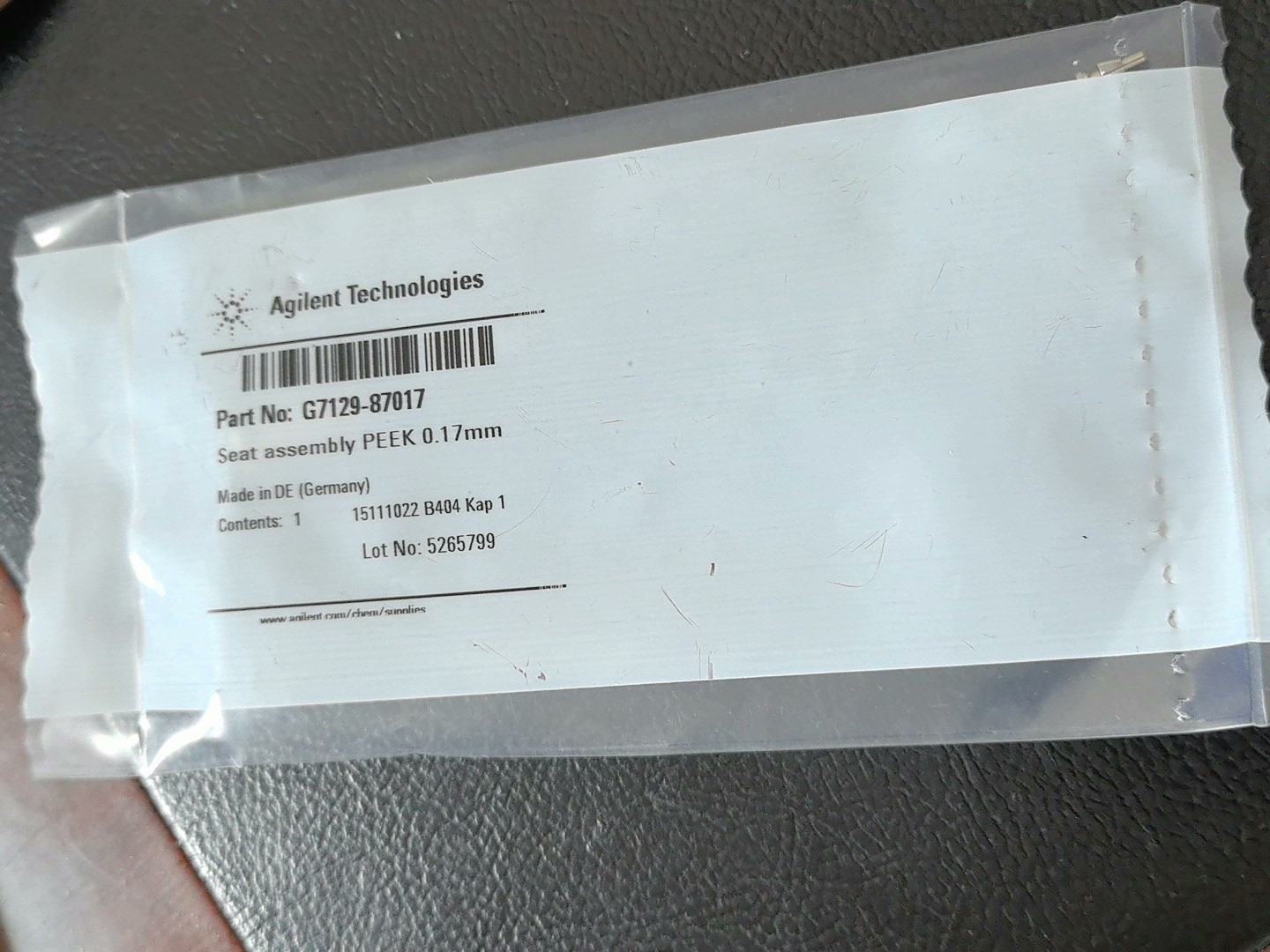 Agilent G7129-87017 in stock 1 needle seat PEEK 0.17mm inner diameter capillary tube for 1290 Infinity II sample bottle injector, photographed in person