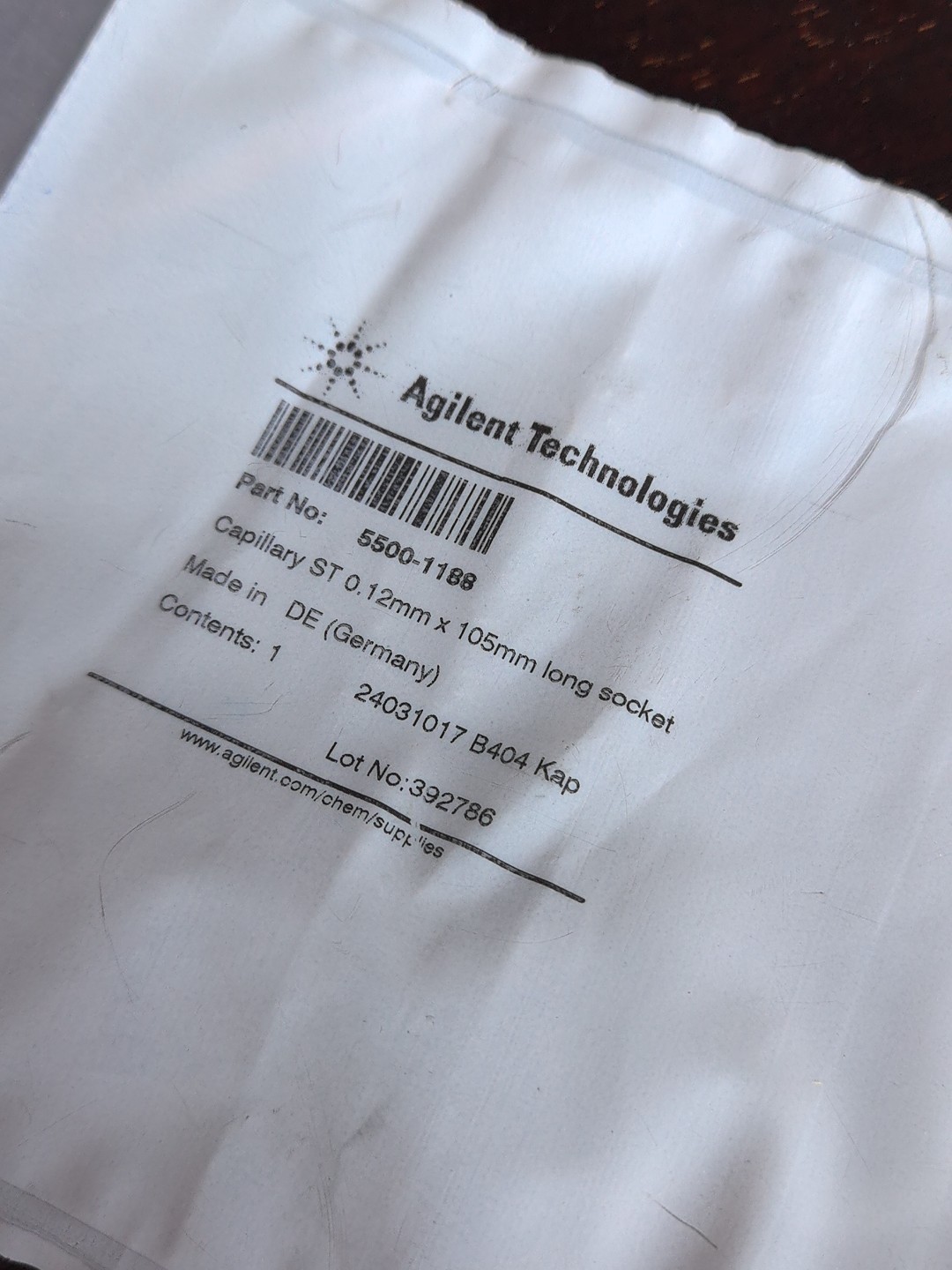 Agilent liquid chromatography instrument accessories, 5500-1188 Quick Turn stainless steel capillary tube, 0.12 x 105 mm