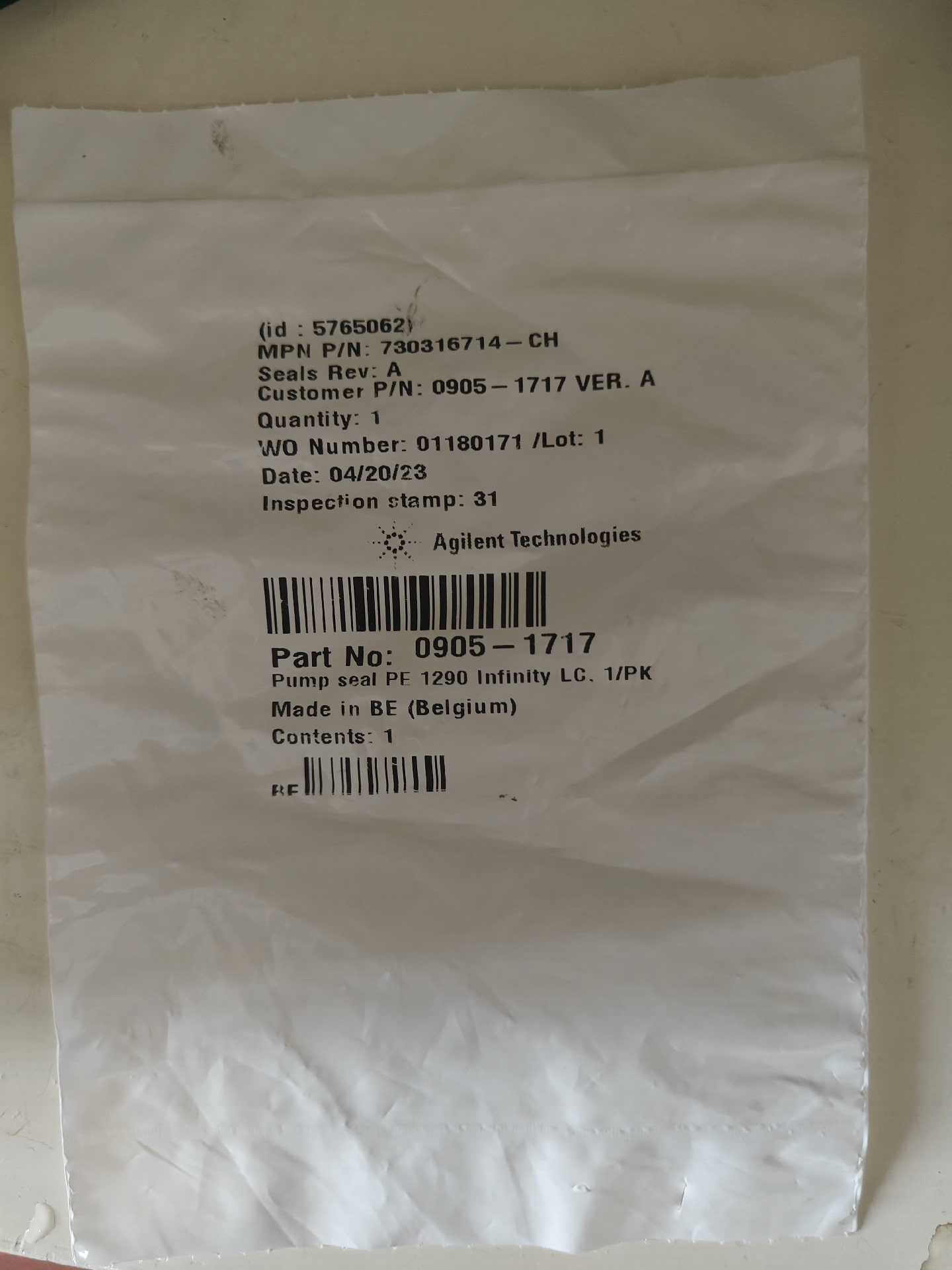 Agilent liquid phase sealing ring, 0905-1717, 1290 pump sealing gasket, original authentic, brand new unopened.