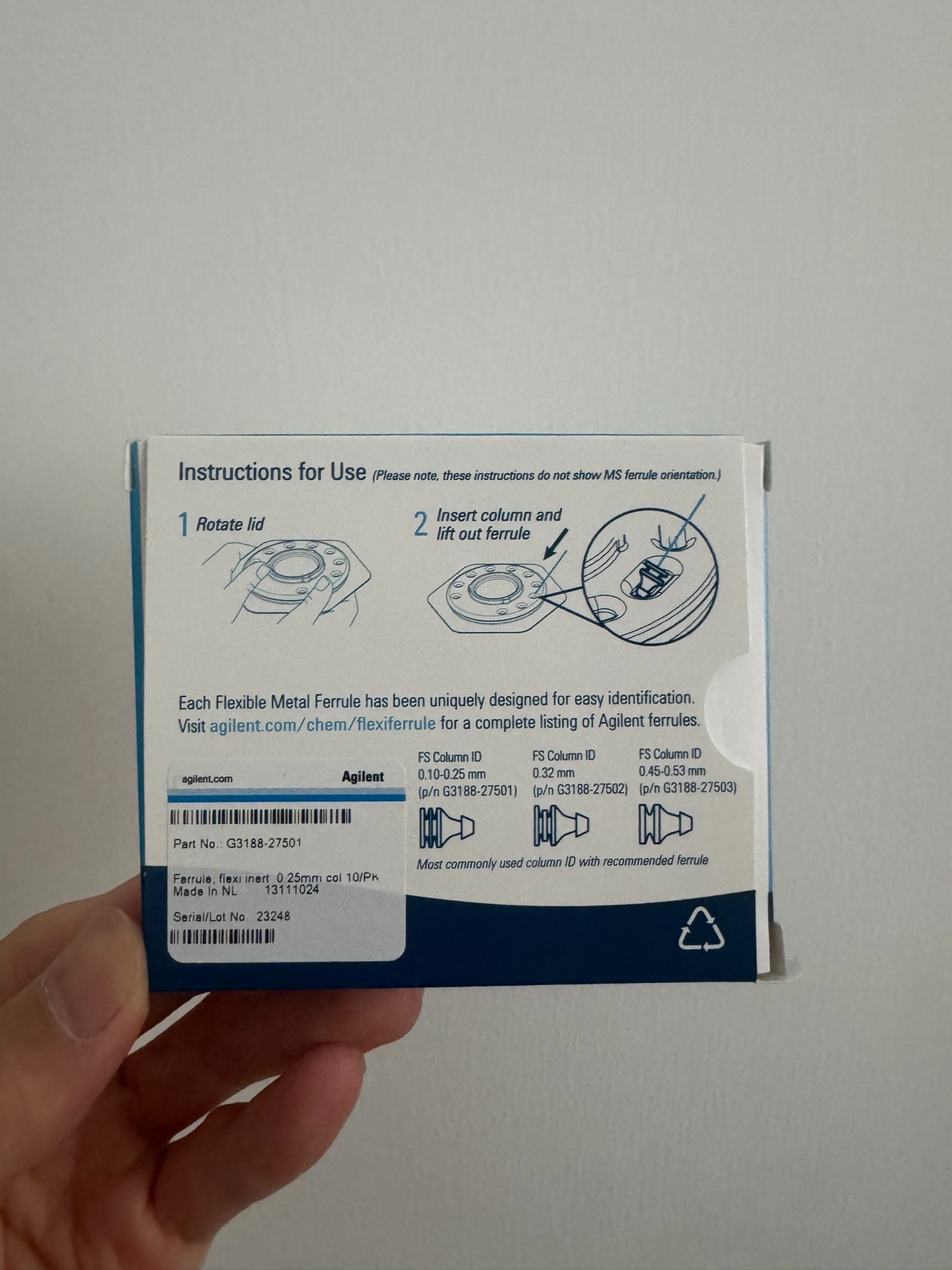 Agilent metal sealing gasket item number: G3188-2750125, manufactured in two boxes
