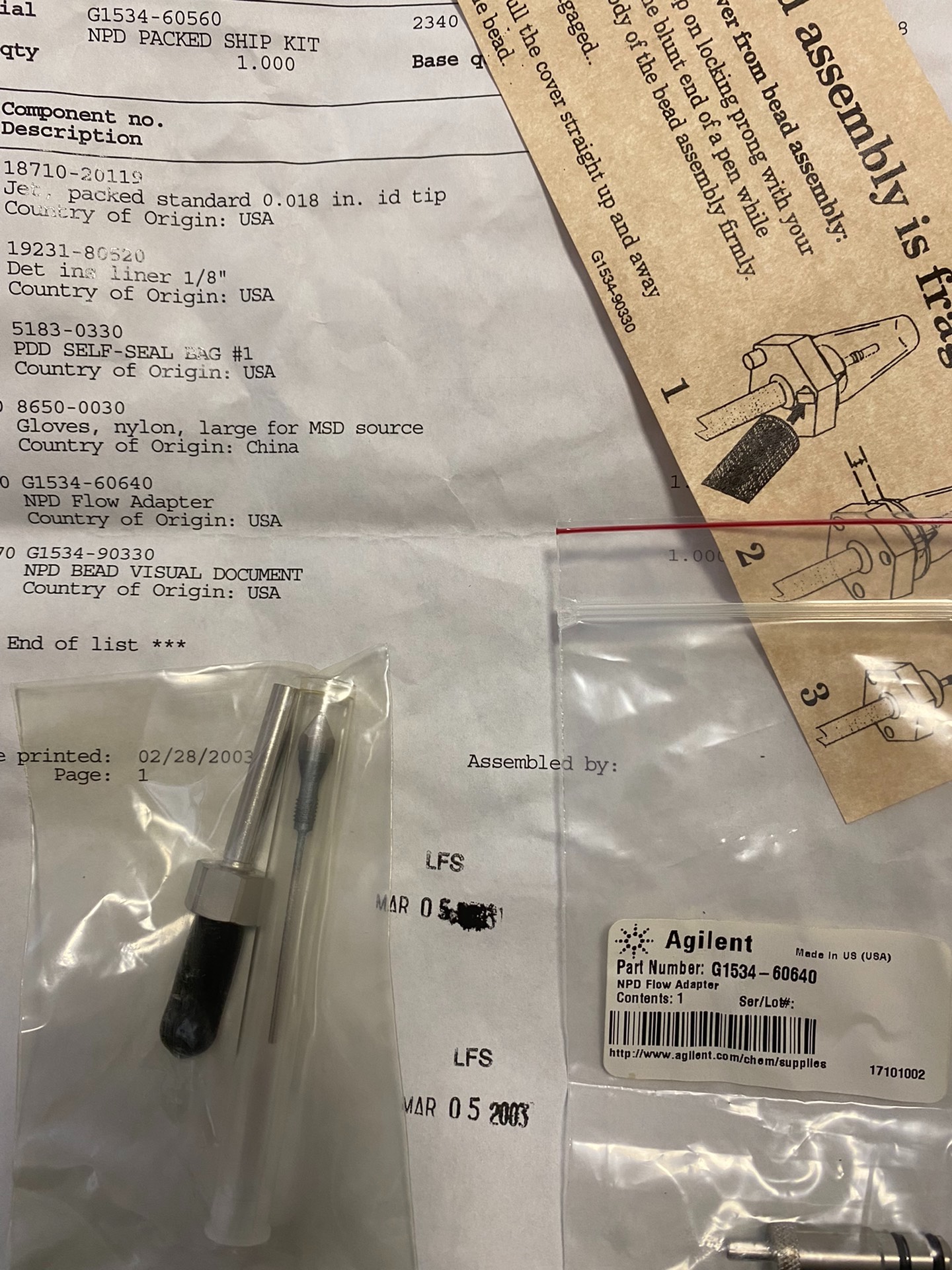 Agilent NPD Detector Agilent NPD Detector Accessories Maintenance Package, please contact