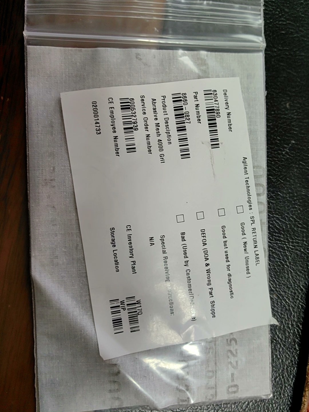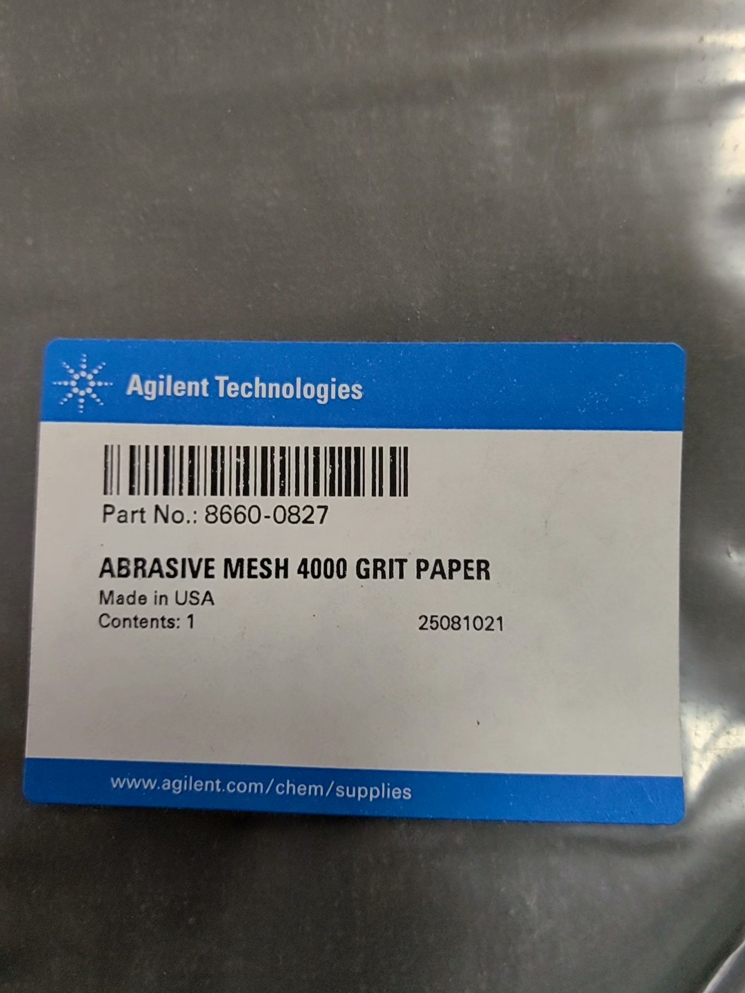 Agilent sandpaper, used for polishing ion sources, 8660-08274000 mesh (4um). Shot
