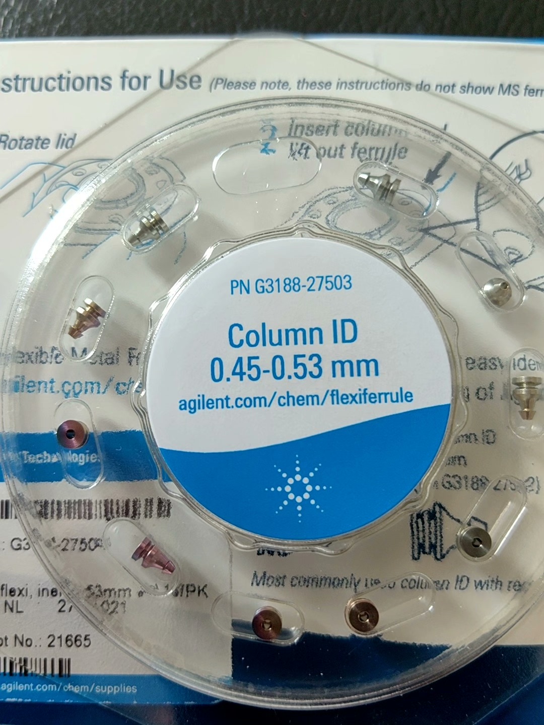 Agilent sealing gasket G3188-27503 with an inner diameter of 0.8 mm, suitable for 0.45-0.53 mm per pack