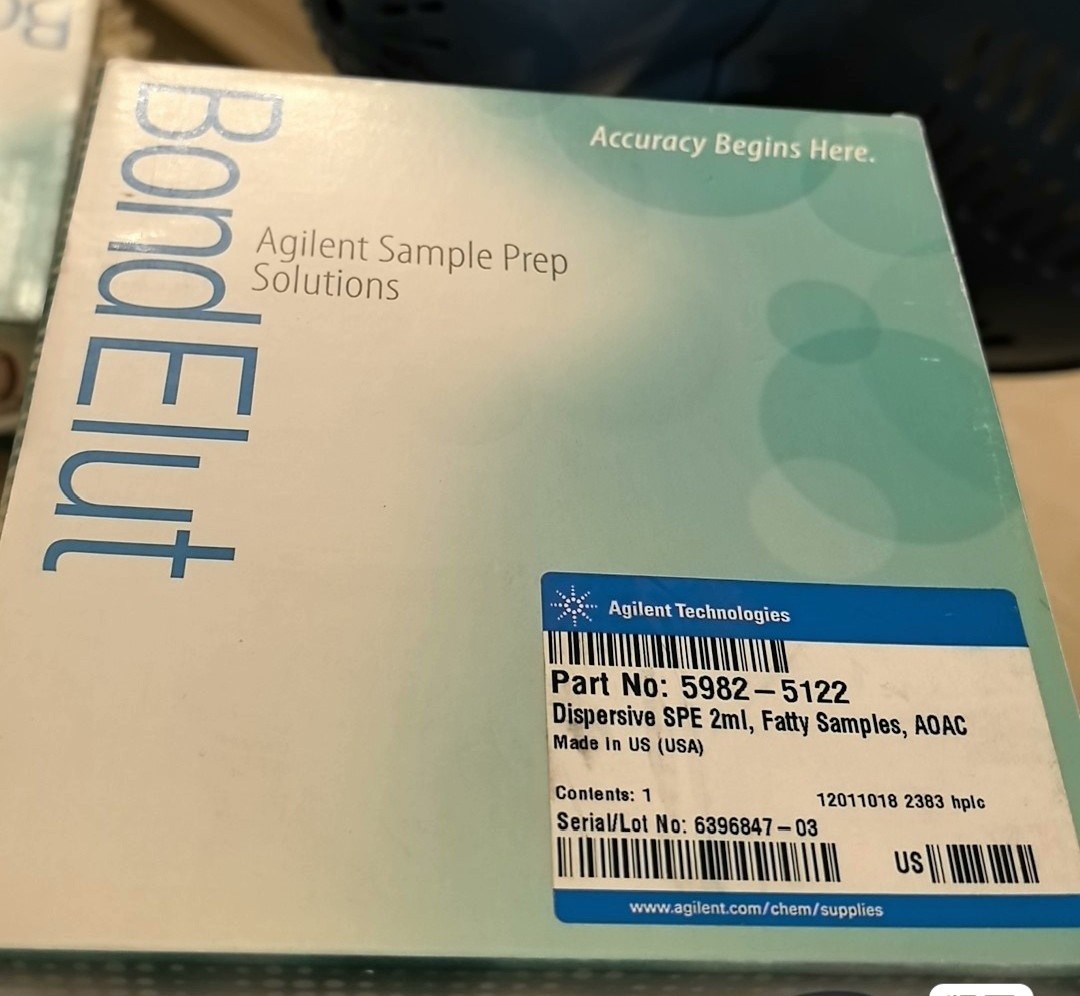 Agilent solid-phase extraction column, item number: 5982-5122, QuEChERS dispersion kit, fruits and vegetables containing fat and wax, AOAC method, 2 mL, 100/pack Remove polar organic acids, some sugars, most lipids, and sterols.