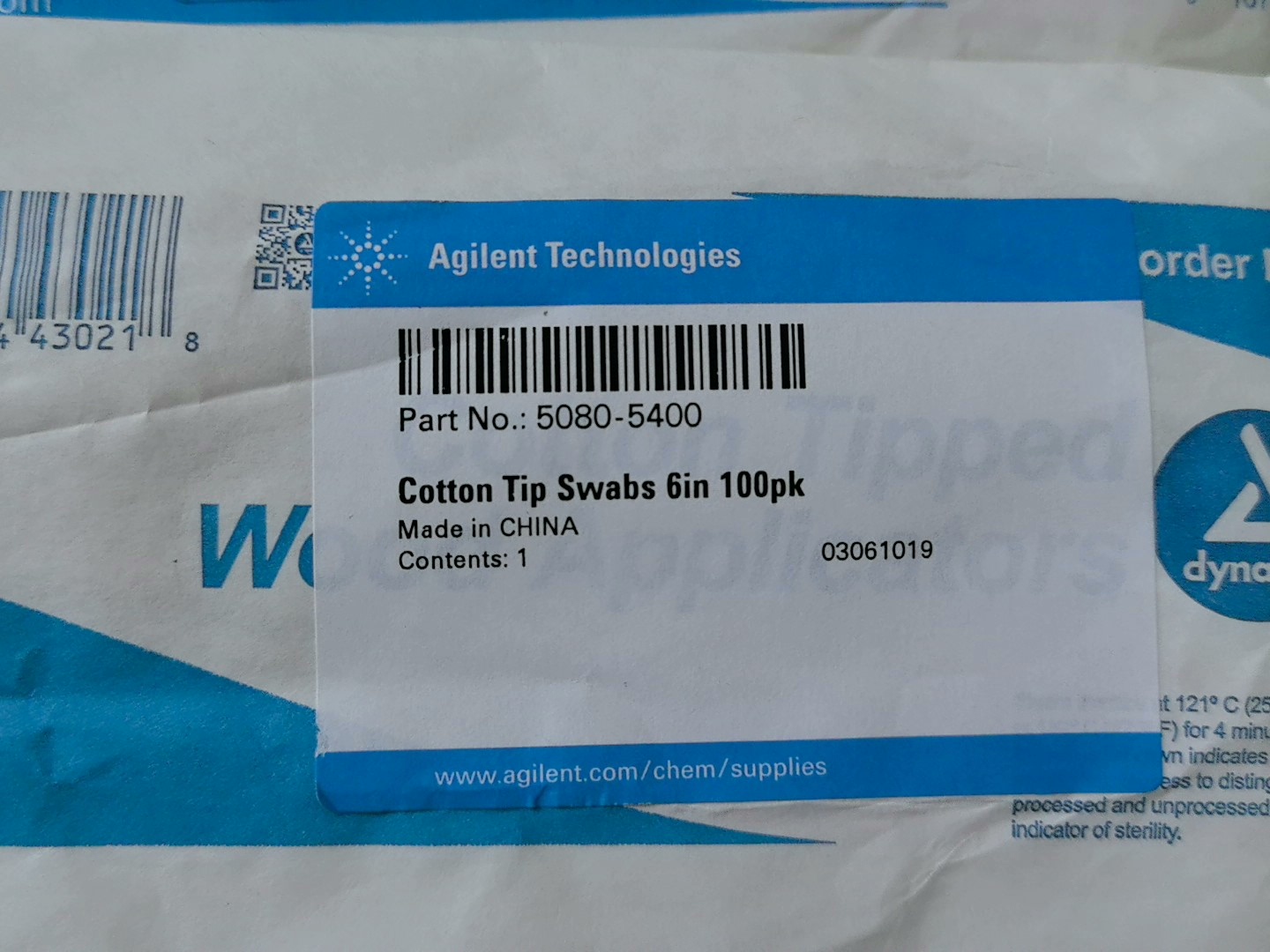 Brand new Agilent cotton swab, maintenance specific, item number 5080-5400, brand new and unopened, photographed in person