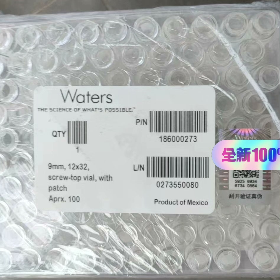 Brand new waters186000273, Clear Glass 12 x 32 mm Screw Neck Vial, 2 mL Volume, 100/pk.Brand new and unopened, new products are in stock, with anti-counterfeiting code.Starting from ten packs