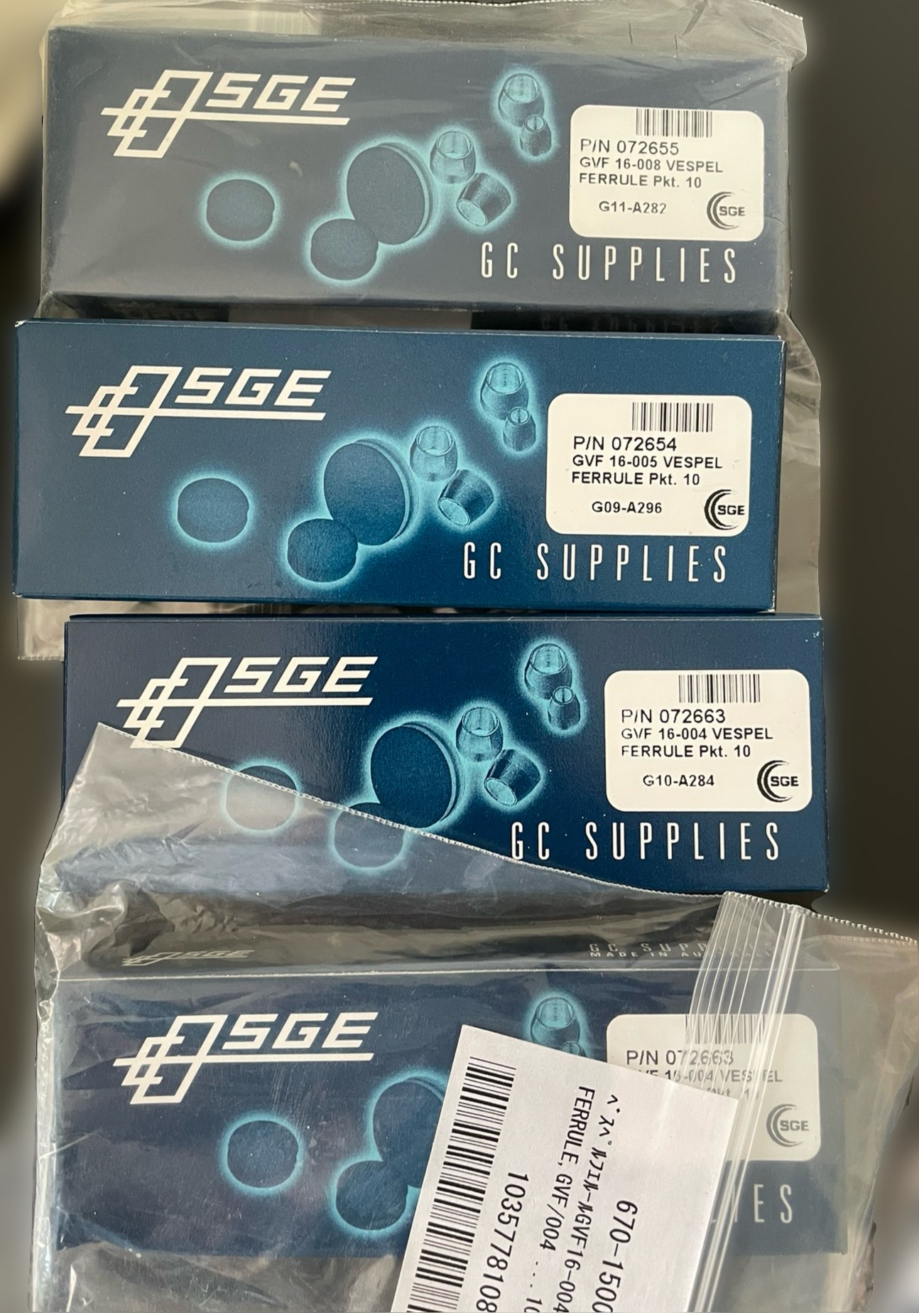 Shimazu SGE 072663, 2 boxes Shimazu SGE 072664, 1 box Shimazu SGE 072665, 1 box brand new unopened