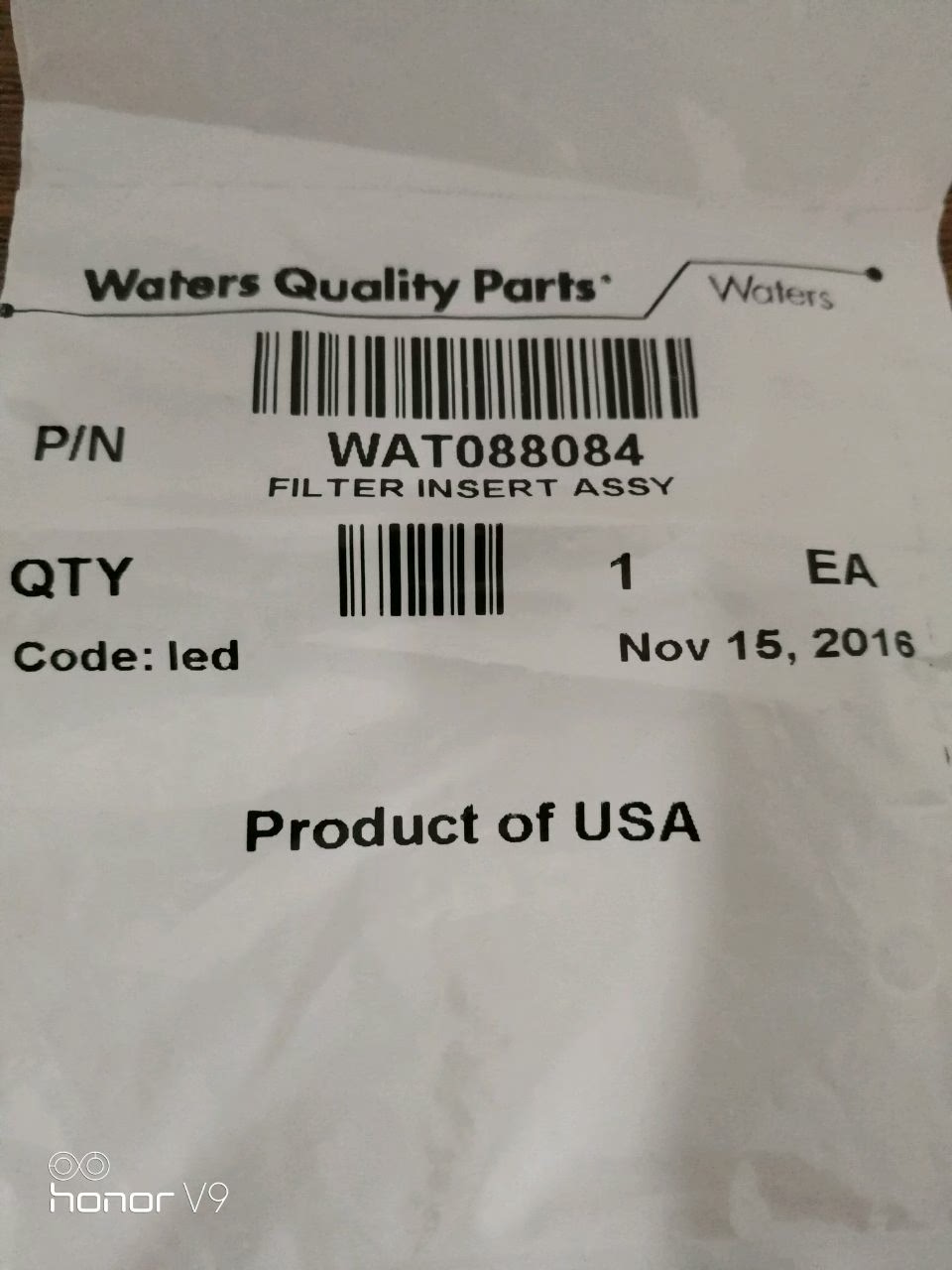 Waters check valve and filter element