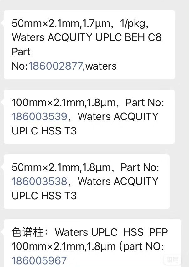 Waters chromatographic columns 186002877, 186005967, 186002350, are all in stock.24 years new model, you can click on what I want….