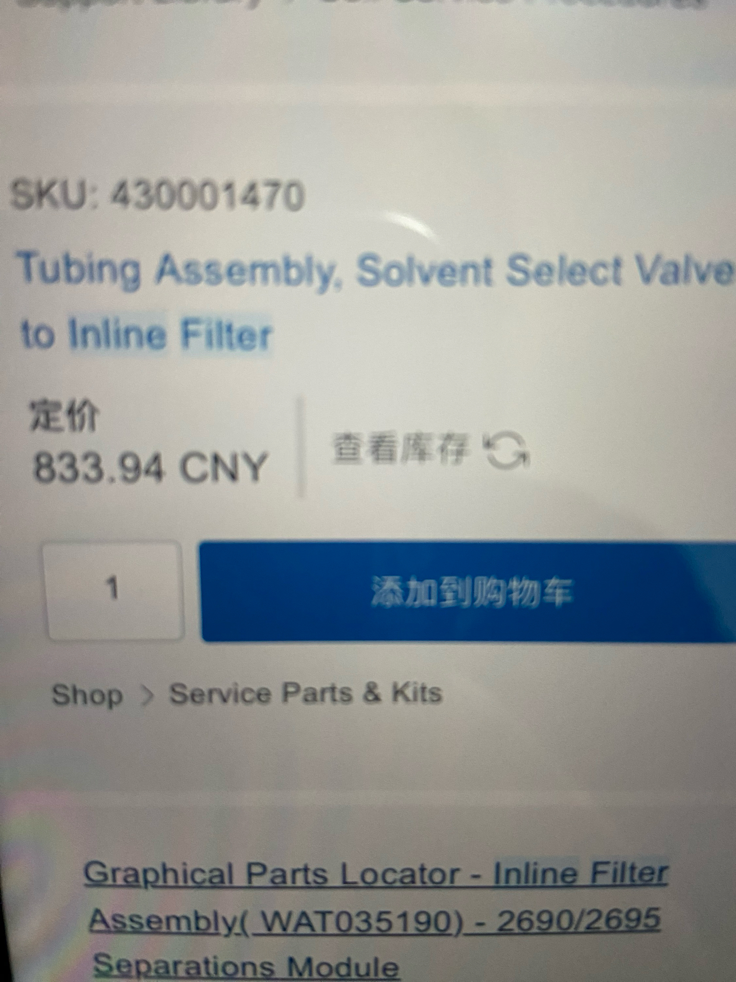 waters waters, pump inlet line.430001470, ssv to inline filter pipeline, solvent selection valve pipeline brand new.
