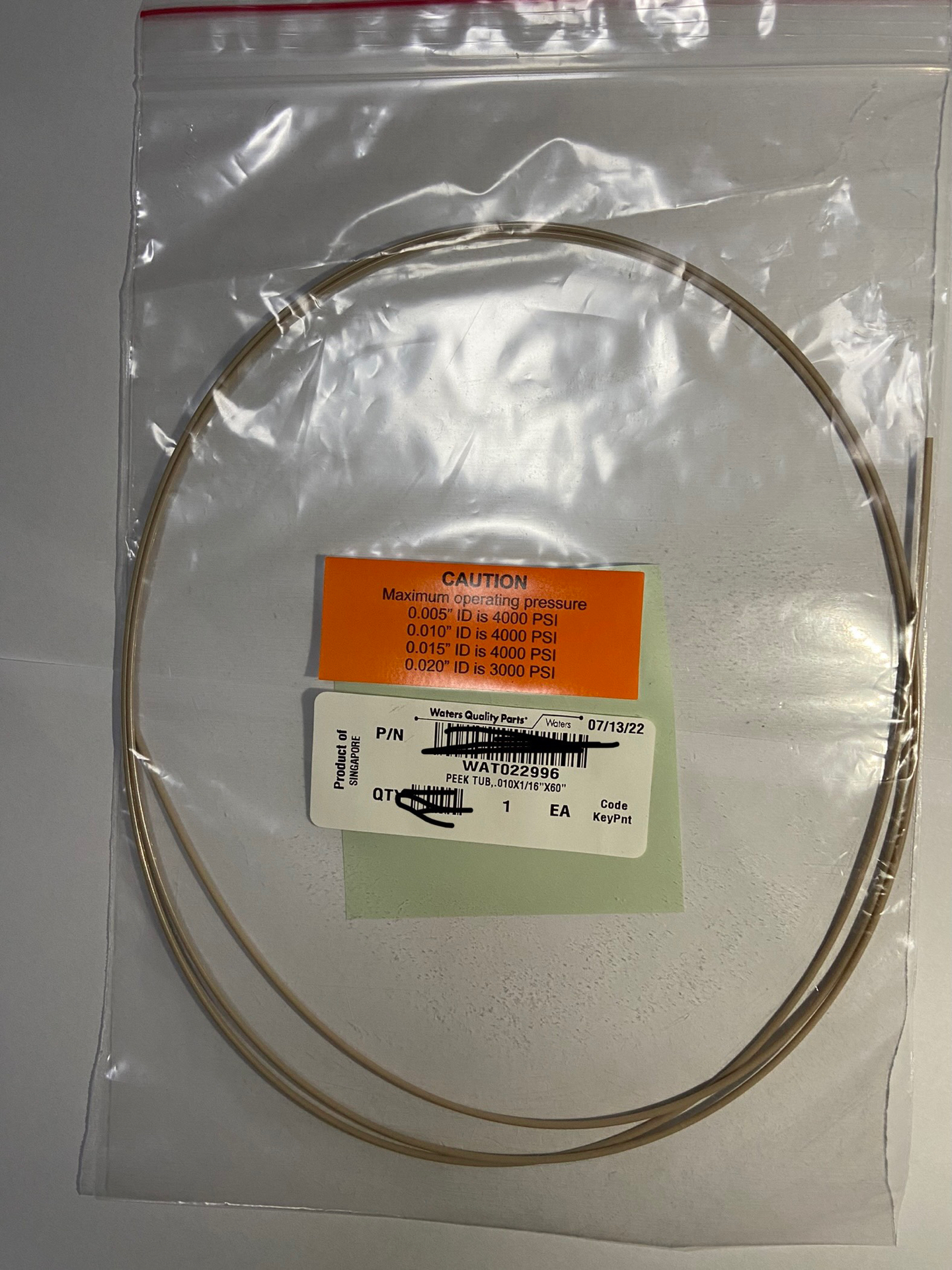 Waters Waters, WAT022996 liquid phase, peek pipeline, specifications: .010×1/16×60 Brand new unopened picture is a mosaic, the real thing is very clean.